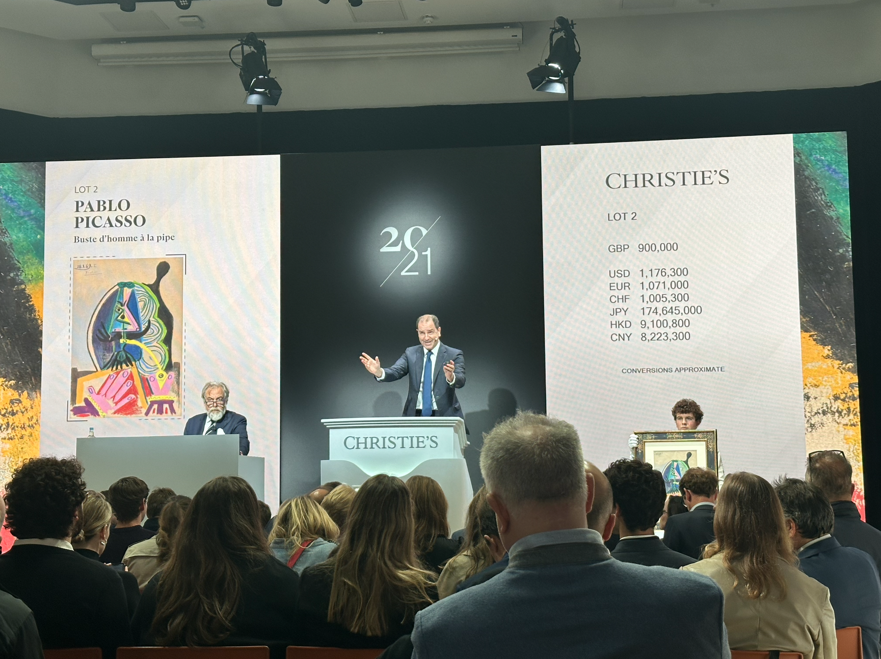 A view from my seat at the evening sale at Christies.