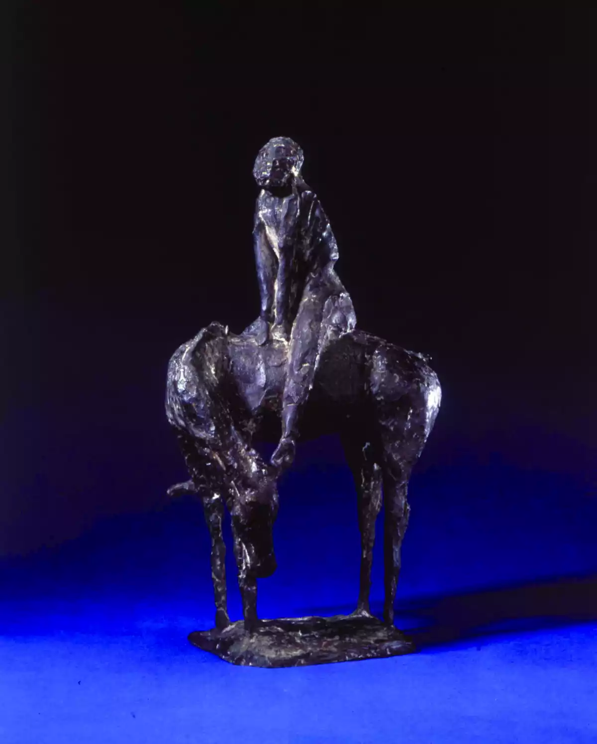 An American client from the mid-west contacted us in 2000 wanting advice on starting a collection. He had recently sold his company and wanted to invest his time and money in something worthwhile. He enjoyed learning about different periods of art and relative values. We helped him acquire pieces of lasting value and interest, from a Renoir portrait of a girl (who reminded him of his niece) to a large Marino Marini oil and this Marini sculpture, Piccolo Cavaliere .